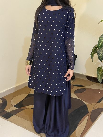 This graceful georgette frock is designed to bring effortless elegance to your wardrobe. Crafted from lightweight, flowy georgette, the frock drapes beautifully, creating a flattering silhouette with every movement. It is paired with a soft chiffon dupatta that adds a delicate, airy touch and completes the look with refined charm. Perfect for festive gatherings, formal occasions, or evening wear, this ensemble blends comfort with timeless style, making it a versatile choice for those who love understated sophistication.